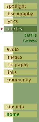 This main list of articles is a very basic bibliography. The "details" link on the left takes you to more detailed descriptions (oddly enough), and there's also a link that limits the list to album and concert reviews.