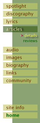 Wonderful in-depth interview during the Maria tour. Topics include Peter Gabriel, Michael Jackson, making a mix that doesn't batter you, and Siberry's own stream-of-consciousness summary of the evolution of her work.