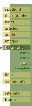 Pseudo-BiographyMaria to Sheeba"Jane was born to wander," swears Rolling Stone. "It's what she does best." On the album Maria, meandering Jane sings jazz, a liberating form that fits her perfectly. Over the course of three days, Siberry recorded 30 hours of rhythmic jams improvised around "shapes," then spent three months adding vocal tracks. The resultant songs of lambs, butterflies and yes, sex, include the 20-minute suite "Oh My My," the minimalist ballad "Goodbye Sweet Pumpkinhead" and "Begat Begat," a scat/chant so unfettered Siberry almost seems to be speaking in tongues. "See the Child" is a nursery rhyme with bebop cadences which matches Siberry's aim of creating music with "enough space in it so you can walk in and look around. Like a Dutch painting." Shortly after releasing Maria, Jane sang and wrote the lyrics to Nigel Kennedy's "Innig" on his recording KAFKA. Both works seemed to be the start of a new sort of wandering -- one that would take Siberry to her very own space. On May 17, 1996, Siberry started her own label: Sheeba Records. Based in Toronto, Sheeba's primary purpose is to distribute "all things Siberry," including recordings, books, and video. The Sheeba label is home to some remarkably intimate glimpses of Siberry's life and work. On Teenager, Jane shares some of her earliest musical efforts and family memories; on the New York Trilogy, the energy and fascination that is live Siberry transforms your stereo system into a concert hall ringing with wonder and laughter. And on the latest Sheeba release, Hush, Siberry's voice takes multi-layered flight on songs that are not her own -- and yet become surely, sweetly hers. If you've followed the journey thus far, you know there's no predicting it. Stay tuned to the Sheeba site and this site for news of the next album, book, or mechanical pencil. Back to the